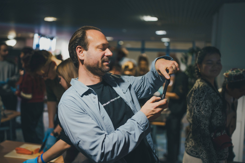Część druga imprezy odbywała się w oczekiwaniu na gotowy plov, którego przygotowaniem intensywnie zajmowali się nasi mistrzowie kuchni. Proces potrafi trwać nawet kilka dni, ale nasz uzbecki “master-chef” zdołał skrócić go do dwóch godzin.