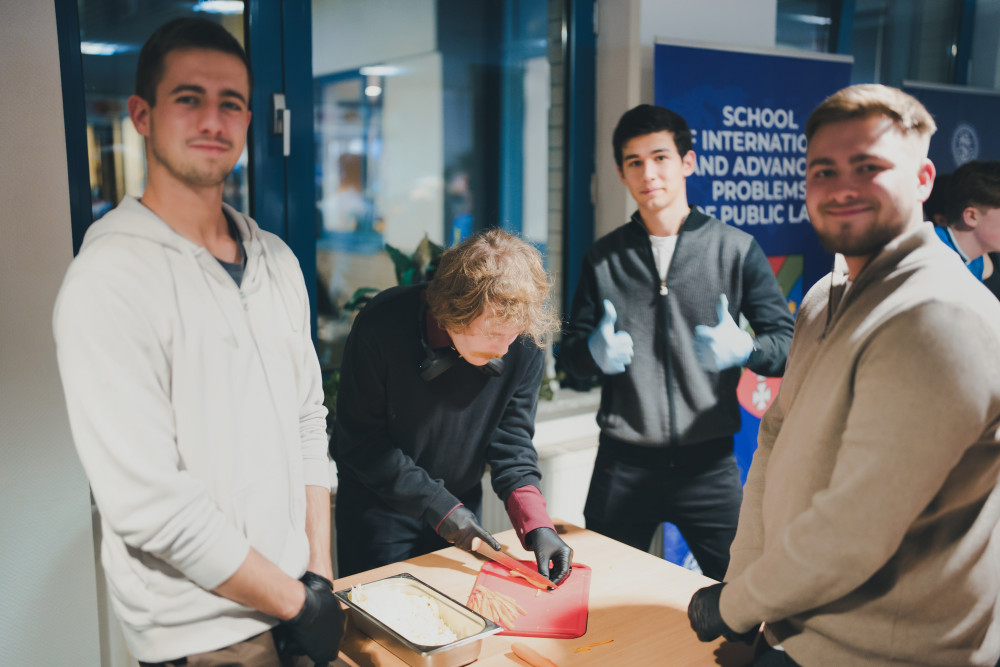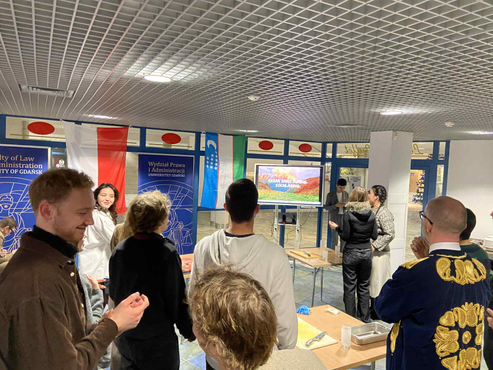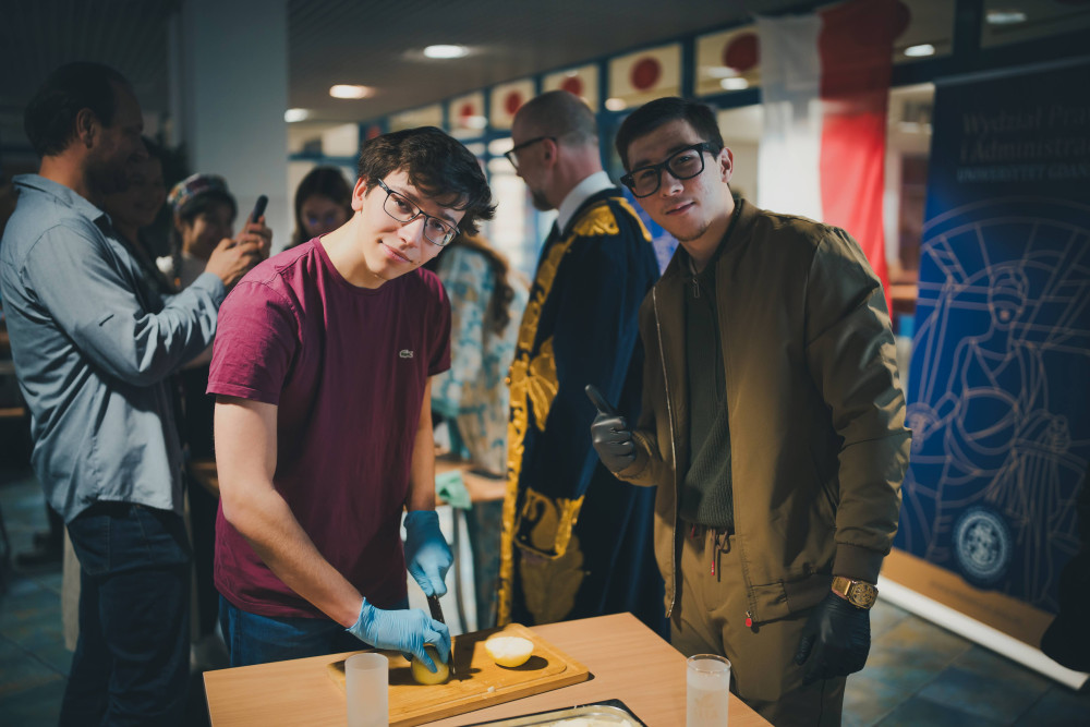 - wszystkich obecnych z nami tego wyjątkowego wieczoru, którzy doskonale pokroili składniki, świetnie bawili się z naszymi gośćmi i wzorowo opróżnili talerze (co nie było łatwe przy uzbeckich, ogromnych porcjach) – studentów Wydziału, przedstawicieli naszej kadry (prof. Monika Tomaszewska, dr Damian Cyman, mgr Wojciech Jankowski), gości – wykładowców z uzbeckiego Tashkent State University of Law - prof. Shukhrata Ismoilova i prof. Mansurjona Boltaeva goszczących w tym tygodniu na naszym Wydziale z wykładami, Filistrów Korporacji akademickiej Lauda – p. Tomasza Woźniaka I p. Filipa Umiastowskiego