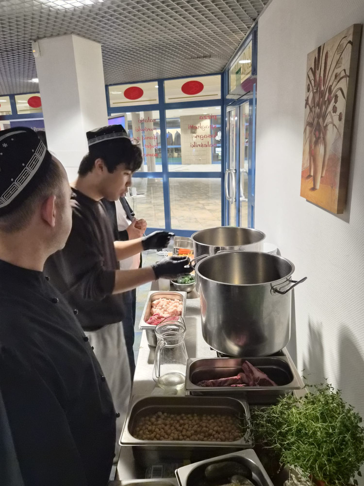 Wśród naszych uzbeckich gości studiujących w tym semestrze na Wydziale znalazła się idealna osoba: Murodjon należy do rodu, który od 9-pokoleń (sic!) kontynuuje tradycje fachu kucharskiego. Sam z powodzeniem łączy pasję do gotowania ze studiami prawniczymi. Murodjon w parze z Szefem Kuchni w wydziałowej restauracji Le Grand Buffet, p. Łukaszem Nieckulą, z którym organizowaliśmy już dla uzbeckich gości warsztaty pierogowe rok temu – pełnili rolę koordynatorów całego procesu kulinarnego.